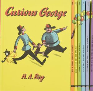 Curious George tells the story of George who moved from Africa to “the big city”. The different books in the series describe George’s adventures while living at the house of the Man with the Yellow Hat.